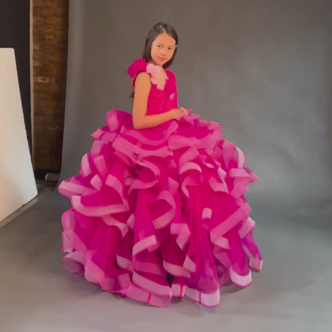 Luxury Pink Ruffles Flower Girl Dress (Ages 4–16 yrs) | Kids Couture