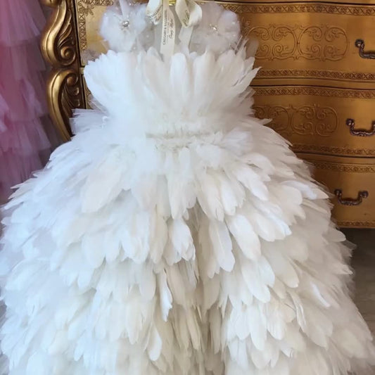 Outrageous Showstopping Stella Kids Gown β White Feather (Ages 6Mβ16Y)